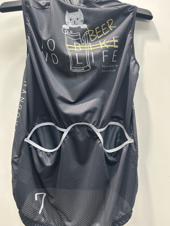7-ITAの可愛くて高機能なジレをご紹介します。こちらのジレの一番の特徴として、背中部分に手をくぐらせる用の穴アクセスホールが開いており、ジレを脱ぐことなくジャージなどに入れた荷物にアクセスできます。他では見られない機能ですしアクセスホールの形状も可愛らしく、またホールの枠が反射素材で夜間の視認性が高いです。