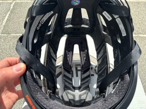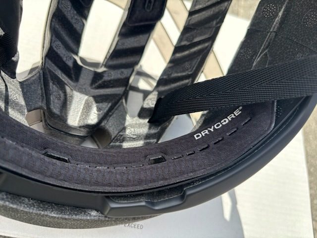 ARIESに採用されているインナーパッドDRYCORE、パッド内部にシリコンビーズが入っており頭部とヘルメットの間に僅かな隙間を作ることでかいた汗を素早く乾燥させ、汗が目に入ることも防いでくれます。