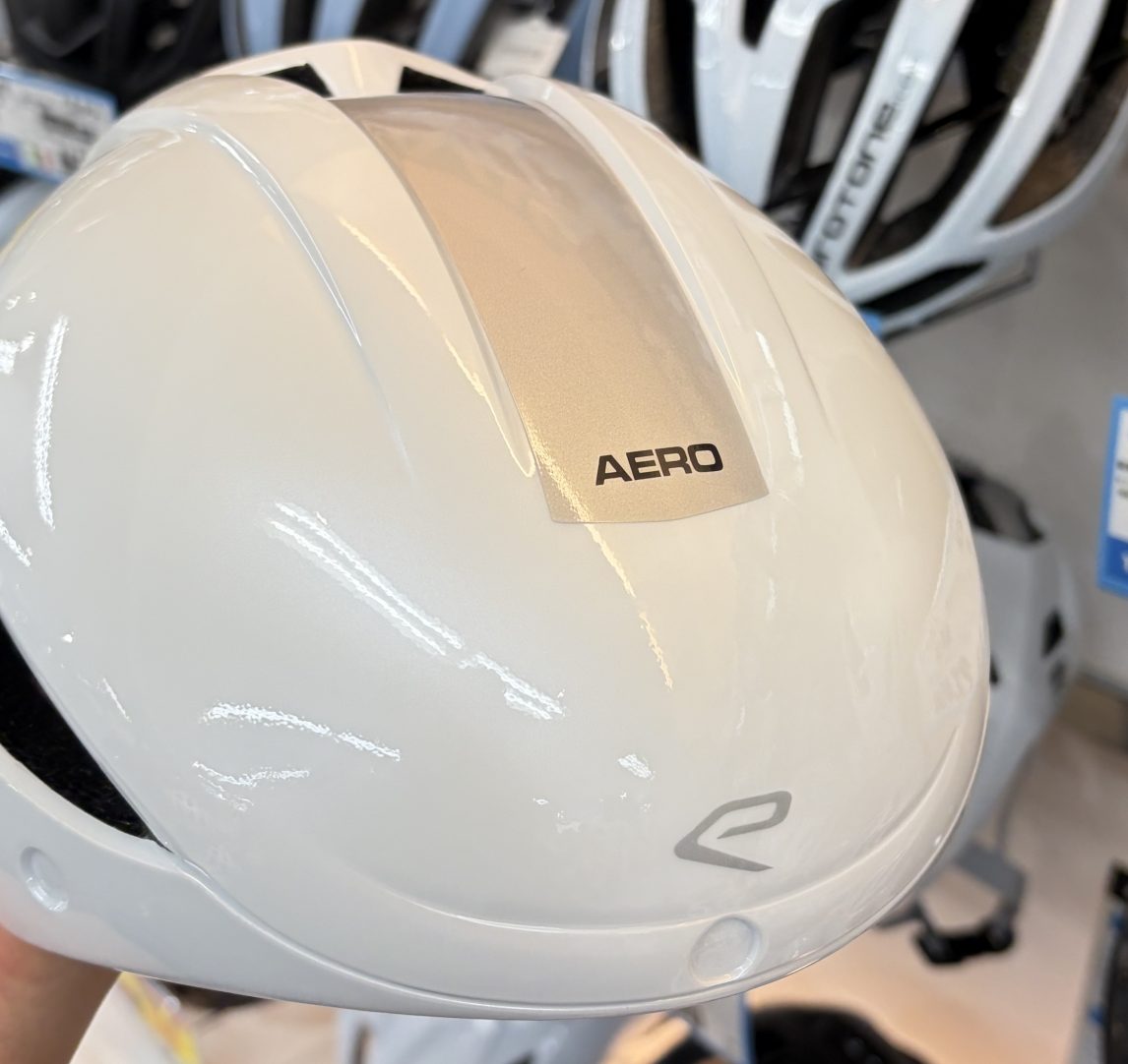 AEROって書いてます。わかりやすいくらいのエアロヘルメット。
