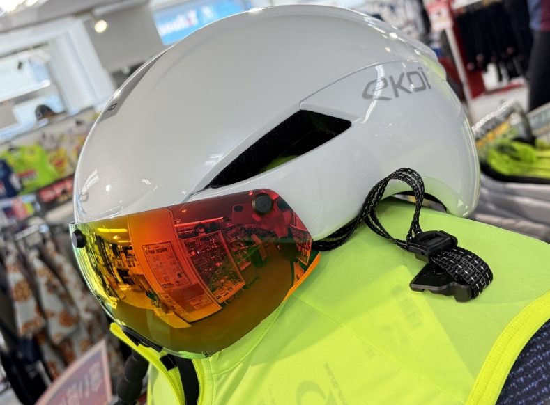 このえげつないバイザーも付属しています。エアロを求めてる選手の為のヘルメットですね。