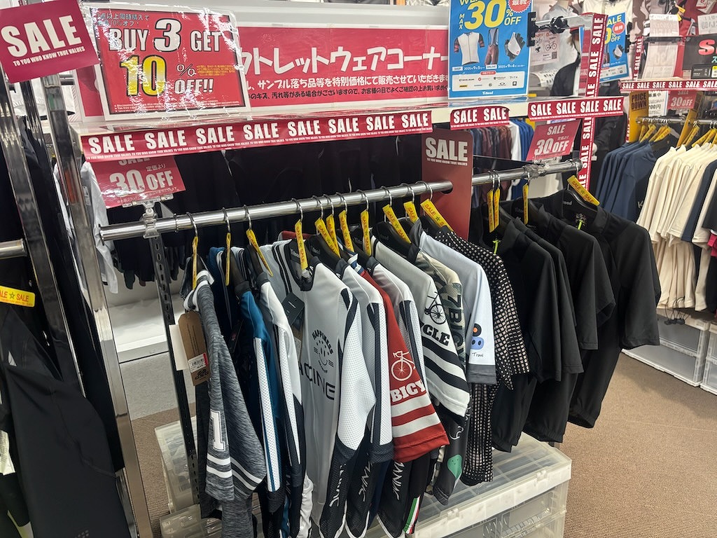 大阪ウェア館は関西随一のサイクルウェア在庫量!