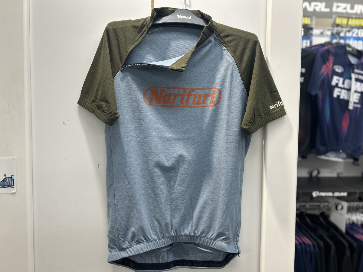 遠くから見ると普通のカジュアルラグランTシャツの様ですが、こちらしっかりとしたサイクルジャージでございます。夏の暑さに対応するための機能を備えたオリジナルメッシュ素材を使用。コットンライクなポリエステル糸を使用することでnarifuriらしいカジュアル感を演出し他には無いサイクルジャージになっています。Tシャツ感覚で着用頂けるゆとりのあるサイズ感が、メッシュ目から入る風を体内で循環させムレを軽減させます。