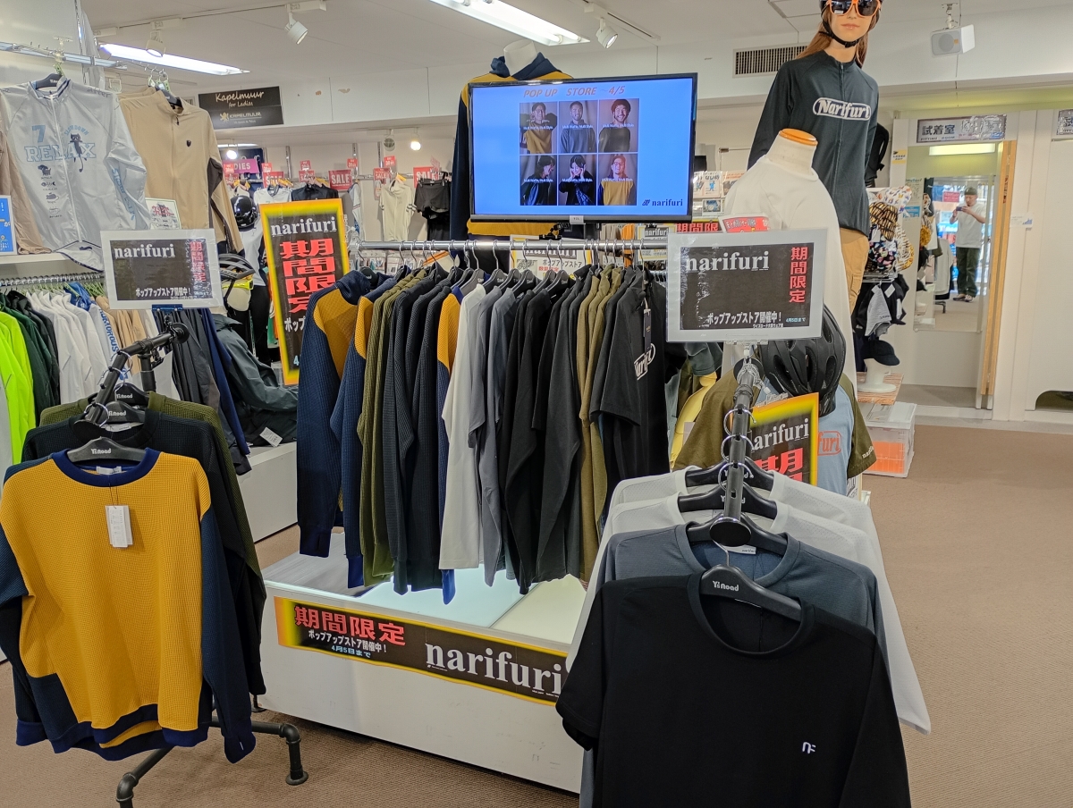 こんにちは!只今大阪ウェア館ではnarifuriポップアップストア開催中です。期間は4/5までとなっております。多数のアイテムを揃えておりますのでこの機会に是非!!