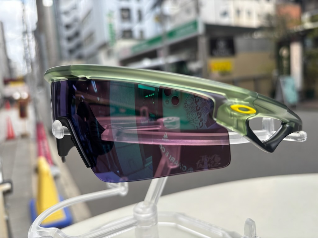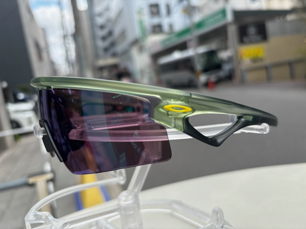 レンズは可視光透過率15%のPRIZM ROAD JADE。グリーンミラーとクリアイエローフレームのカラーリングの雰囲気が◎