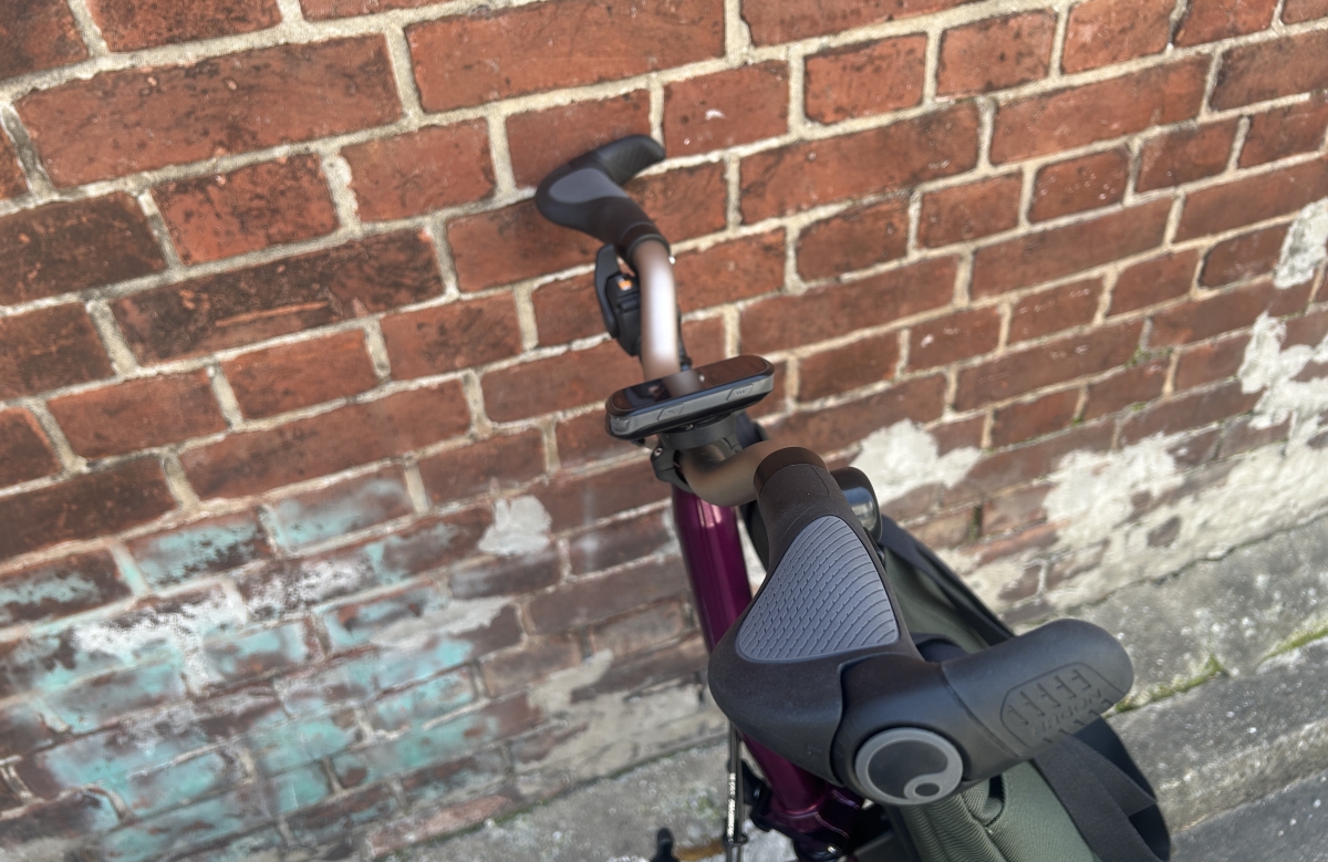 小径車をある程度スポーティーに乗りたい場合エルゴンのツノ付きグリップは必須だと思っていました。こちらはGP2で数字が大きくなるにつれてツノが長くなります。ブロンプトンにはGP3でも問題なく付くという情報を得ていましたが、外観とのバランスを考えてGP2を選びました。実際に装着して走行したところ、人間工学に基づいたエルゴングリップの握りやすさは勿論、よりスポーティーな乗車姿勢をとれるツノの効果は絶大でした。ポジションが限られるブロンプトンにおいて想像よりも効果大だったので正直GP3にしておけば…という気持ちもあります。
