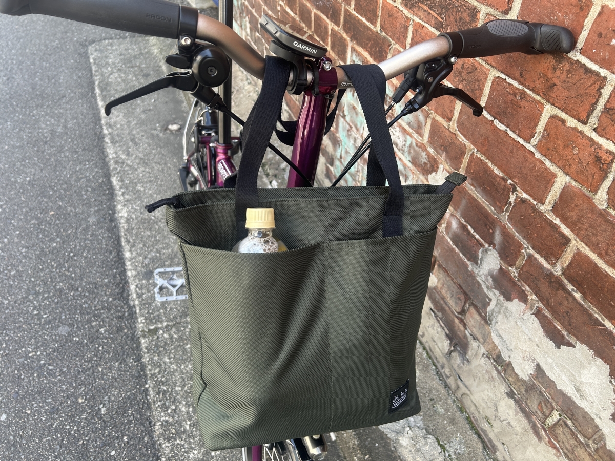 フロントバッグはブロンプトン純正の中から選びたいと思っていました。20ℓ程度のバッグの展開が多い中、比較的小ぶりで日帰りライドに気軽に持ち出せるサイズ感と見た目に惚れました。ブロンプトンはボトルホルダーをどうする問題がありますが、こちらはフロントポケットに500mlペットボトルが丁度収まりますしレインカバー付属と、機能的にもビジュアル的にも満足しています。