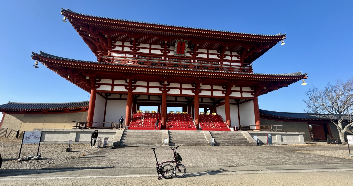 ブロンプトンを納車されてからはじめての本格的なライド。堺から大和川CRを経由して葡萄坂を超え、法隆寺を通過して平城宮跡まで50km程走ってきました。