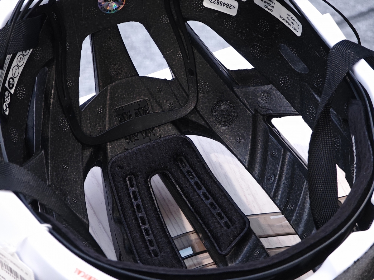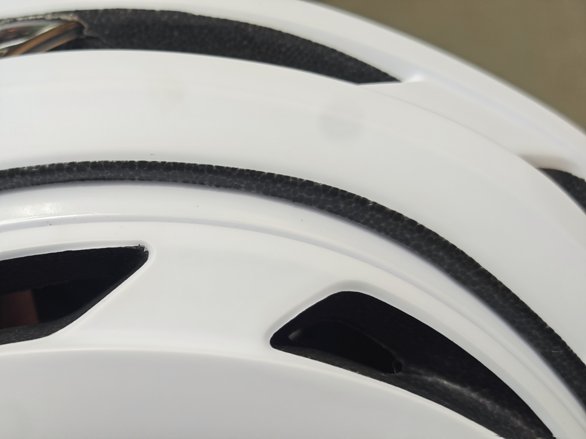 額部分はシェルから浮いているのでシェルに当たらずに衝撃を吸収しそうですし通気性も高くなります。