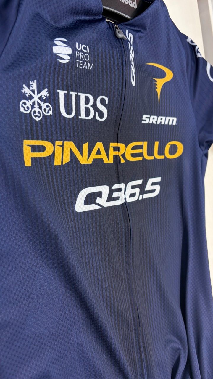 ウェアブランドのQ36.5自体がチーム名・メインスポンサーなのでチームウェアとしては控えめですが、その落ち着いたデザインはピナレロとの相性抜群です!