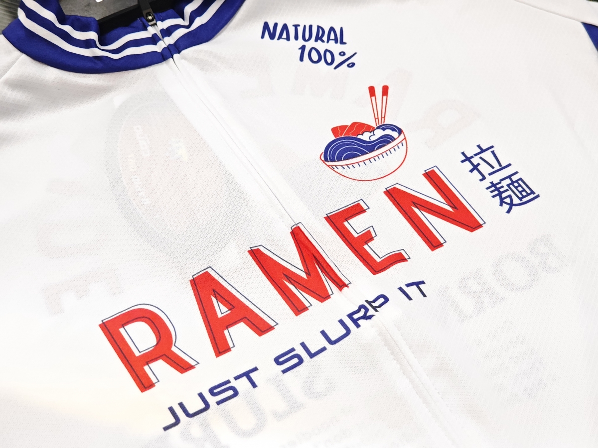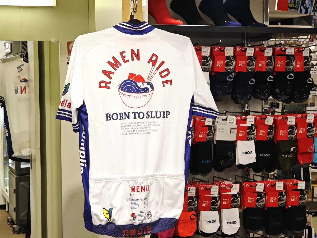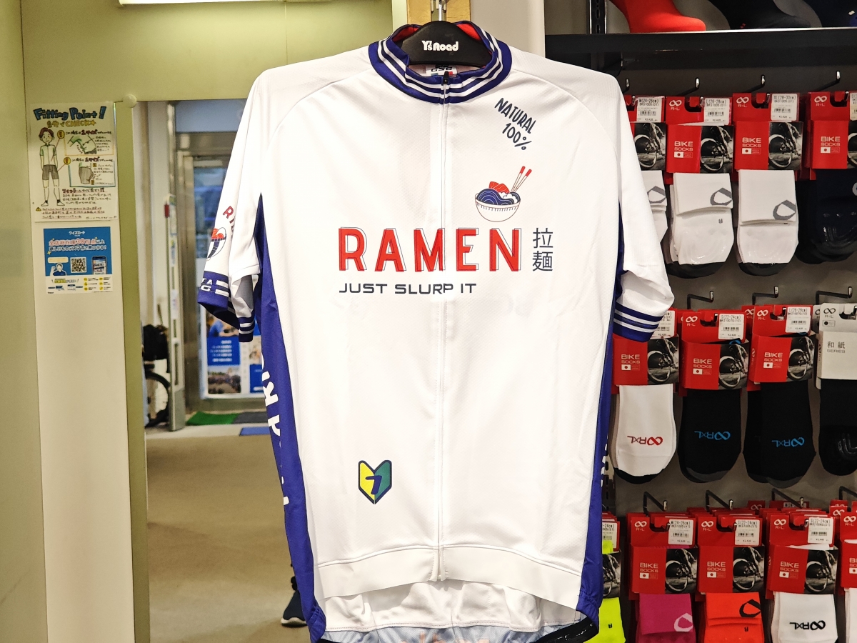 少し変わったデザインのラーメンジャージが入荷しました、是非これを着て遠いラーメン屋を目指しサイクリングしましょう。