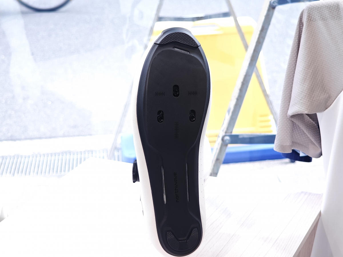 通常のエントリーグレードのソールは柔らかいことが多いですがSonicPlusはカーボンソールかと思うほどカチカチ、硬いと楽にバイクが進みます。