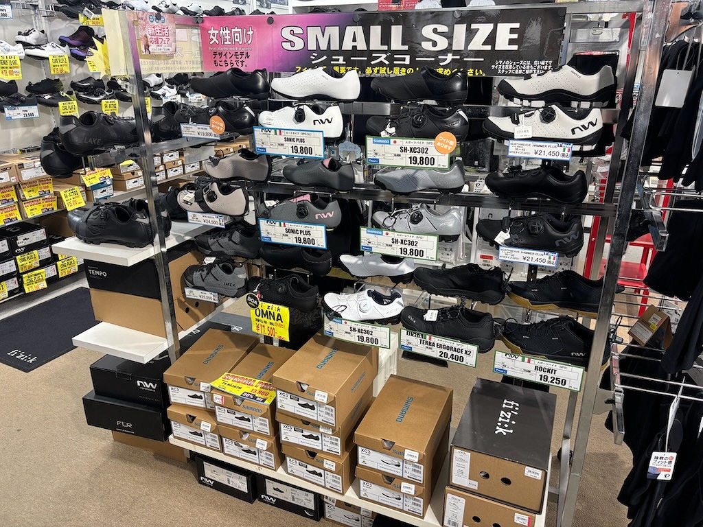 シューズコーナーにてご覧ください!次回はSPD-SL(3つ穴)シューズの小さめサイズをご紹介します!