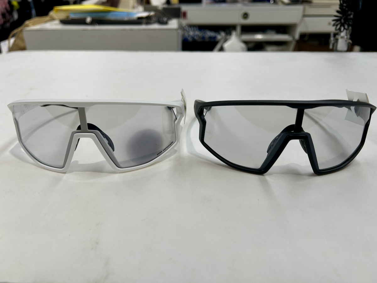 こちらはクリア調光レンズを採用したモデルですが、uvexは調光レンズの変化の速さ定評があり下記写真の様に紫外線ライトを20秒ほど当てるだけではっきりとレンズが変化し、1~2分後には概ねクリア状態に戻ってくれますので、朝から夜にかけて長時間走られる方に特におススメのモデルとなっております。