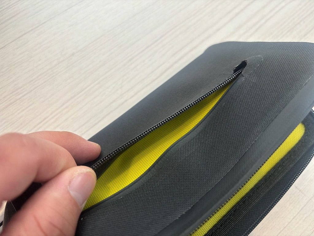 熱圧着がなされており針穴が無いため防水性はかなり高め。これから始まる暑い時期、汗をかいても中身をしっかりと守ります。
