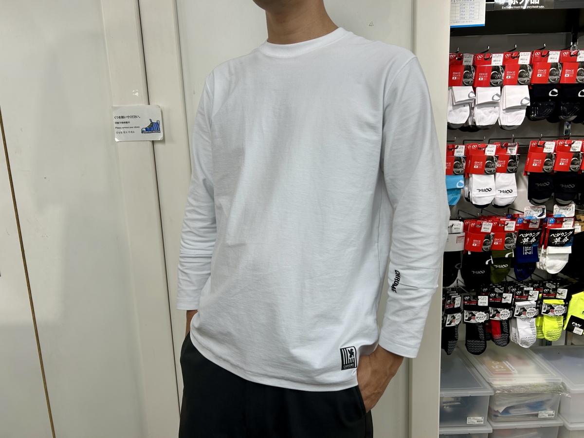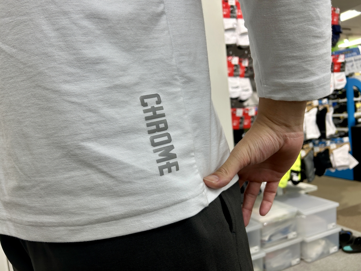 ロンTですが8℃マイナス冷感素材のおかげで涼しいので、真夏になっても使用するつもりです。暑がりの多い大阪ウェア館スタッフからも総じて評判の良いクロームの8℃マイナスウェア。