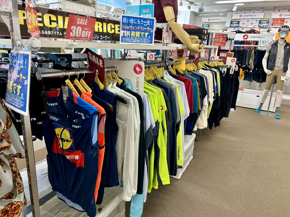 大阪ウェア館は関西随一のサイクルウェア在庫量!