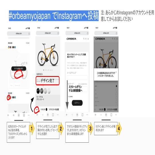 ステップ3. 車体の画像をインスタグラム #orbeamyojapanでコメントを添えて投稿