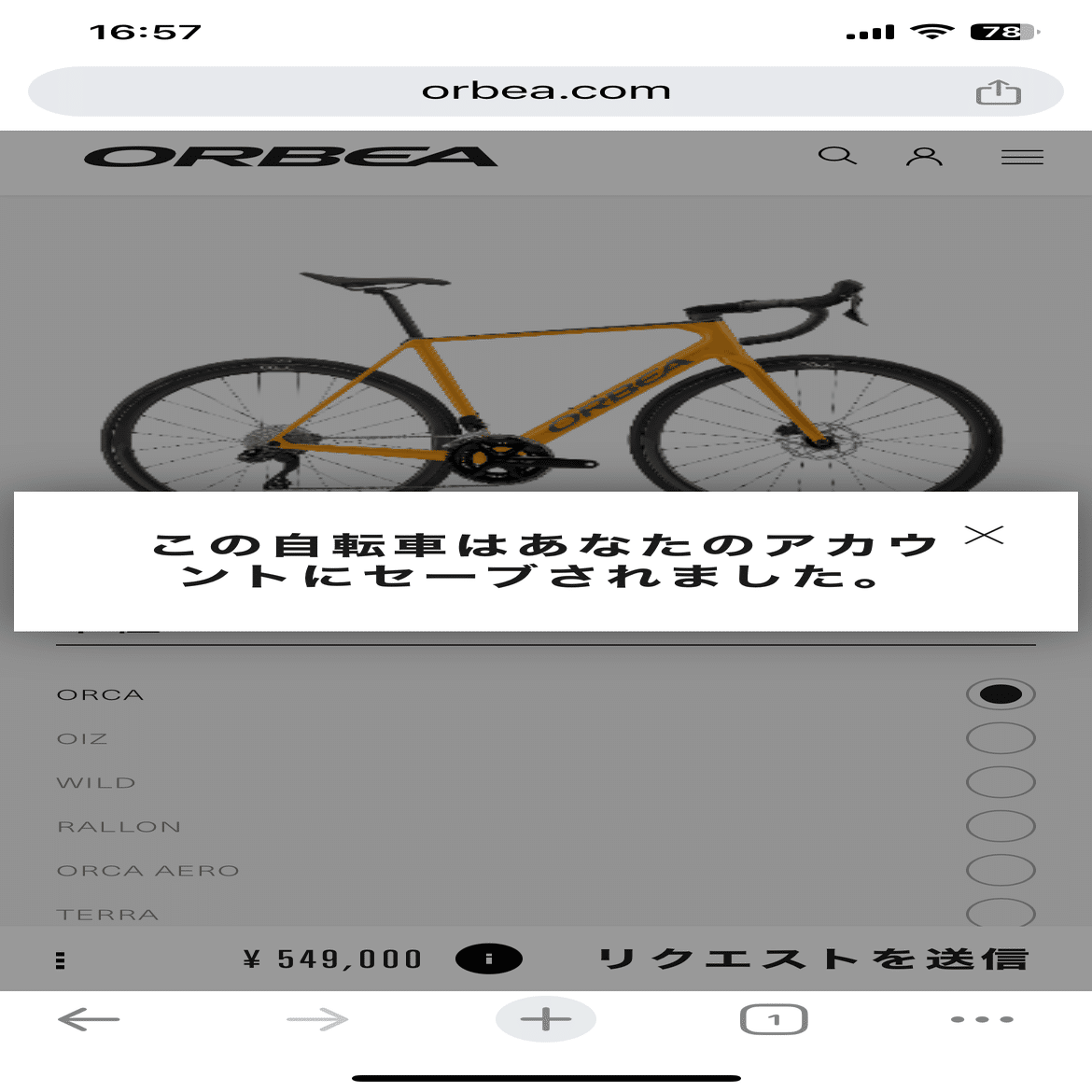 ステップ1. 公式ウェブサイトからORBEAのバイク(MyO該当車種はどれでも可能)をカスタムデザインします。カスタムデザインしたバイクをOrbea.comに新規登録し、データをセーブ