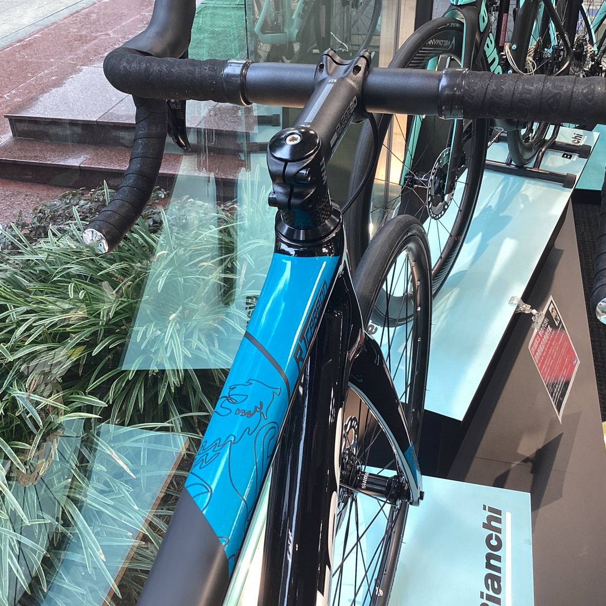 写真じゃ質感とかまでは伝わらないかと思います。すごくカッコいい車体なので、ぜひ実物を見ていたただきたい!!購入をお考えの場合はスタッフにお申し付けいただければ、バイオレーサーで測定したのち、最適なサイズ、ステム長、ハンドル幅を提案させていただきます!