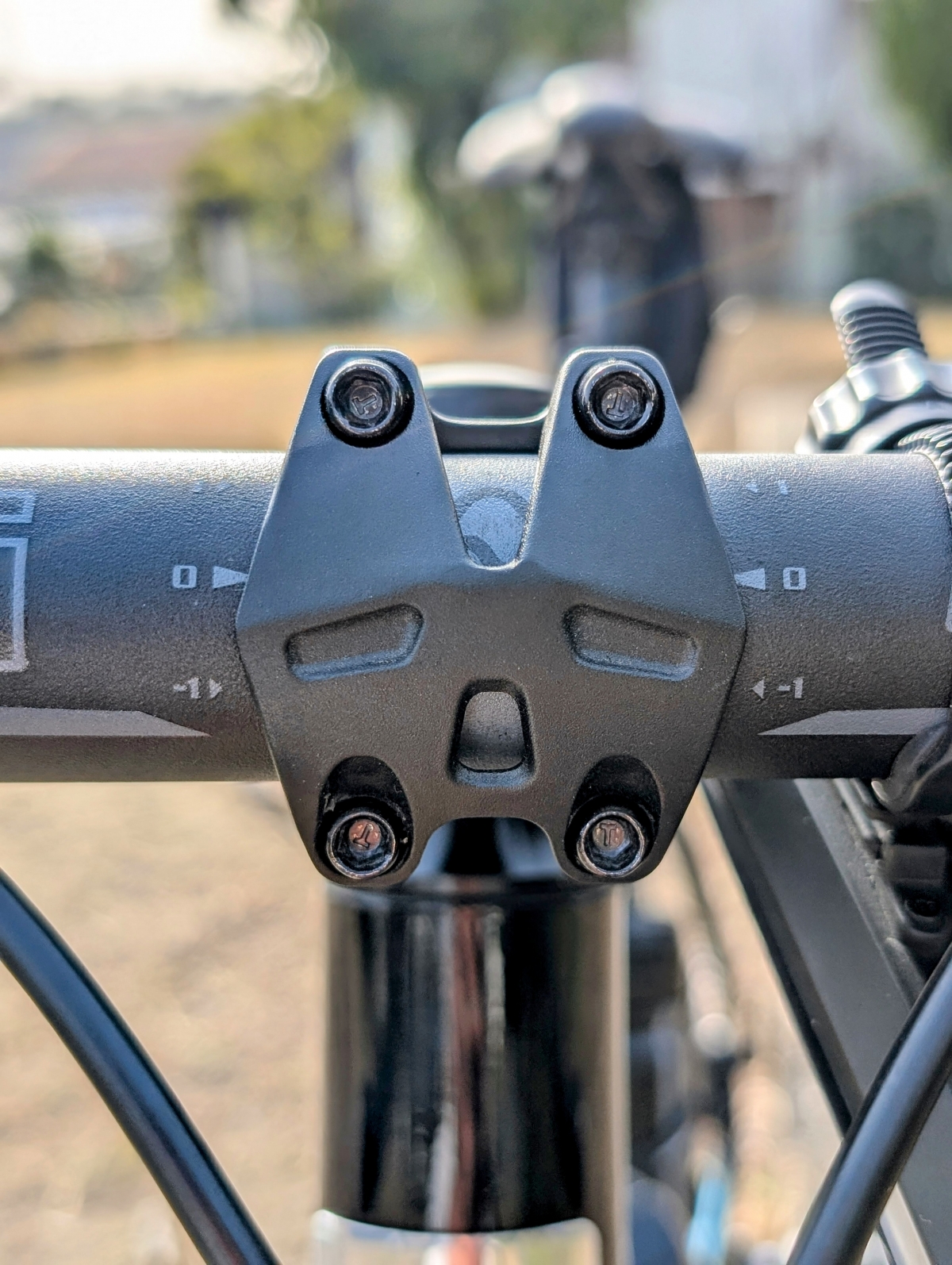 カスタムといってもステム長を短くしただけです…標準で装備されているのは110ミリのもの。それだと少し遠いということで90ミリに。