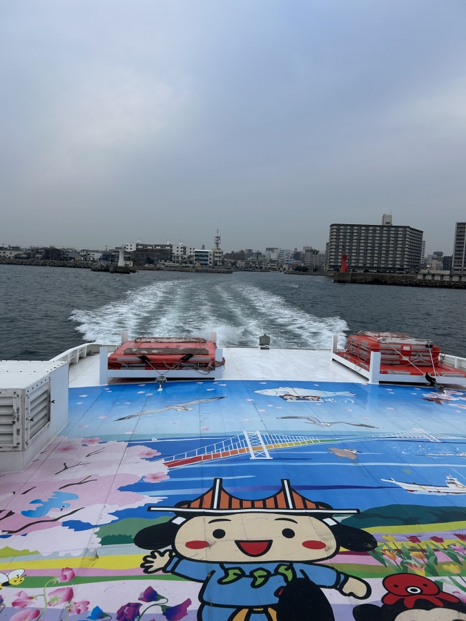 明石駅からジェノバラインまでは自転車で約4分ぐらい!すぐでした。輪行袋に入れなくてもいけます!運行は土日は1時間に1本から2本平日は1時間1本から3本となります。ジェノバラインを使う場合は時間表を確認して計画を立てることがオススメです。今回は計画通りで6時29分明石着で自転車組み立てしてジェノバラインについたのは6時50分でしたので7時の便で向かいました。