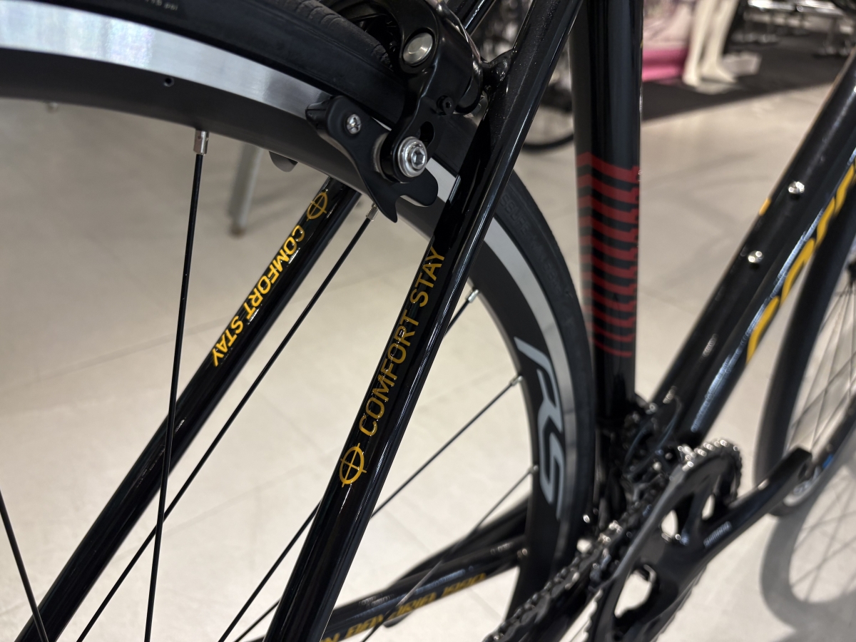 加えてシートステーも少し平たくなっており、これが一般的なアルミロードと比べてより良い振動吸収に繋がり、快適な走り心地を実現します。