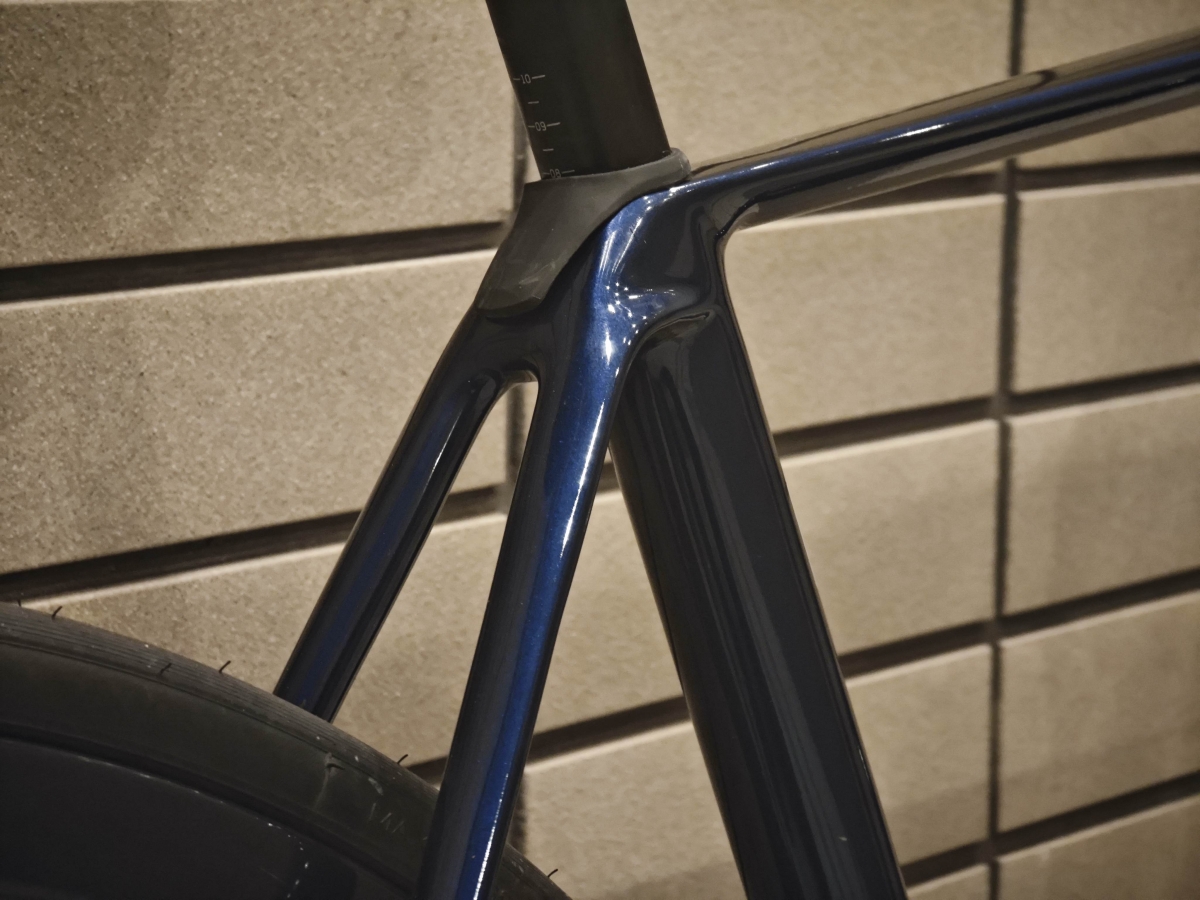 ここが一番好きなポイント、薄く平たいトップチューブ綺麗ですねー