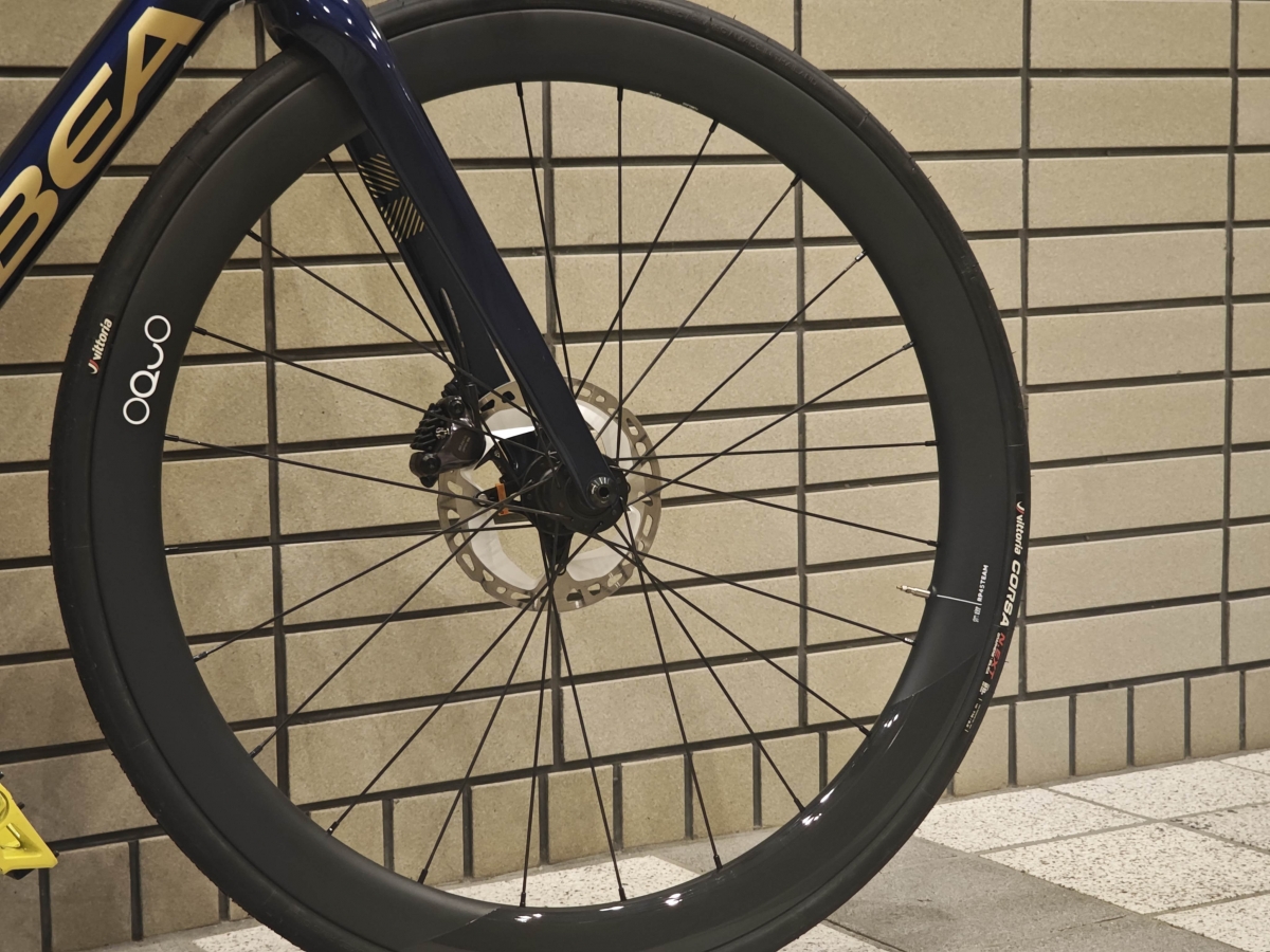 ホイールはORBEA自社開発のOQUOでベンドスポークでしたが剛性不足を特に感じる事はありませんでした。