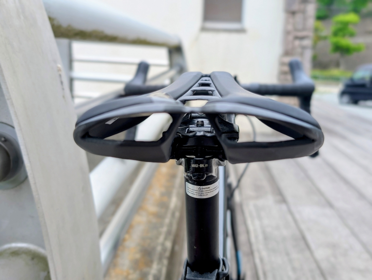 前の部分はパッドが柔らかめなので、前乗りしてもそんなに気にならないし、滑り止め加工みたいになっていて安定感もベリーグッド👍️