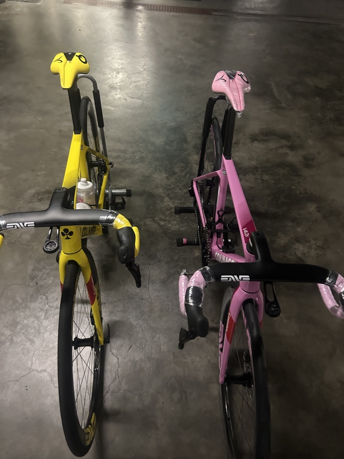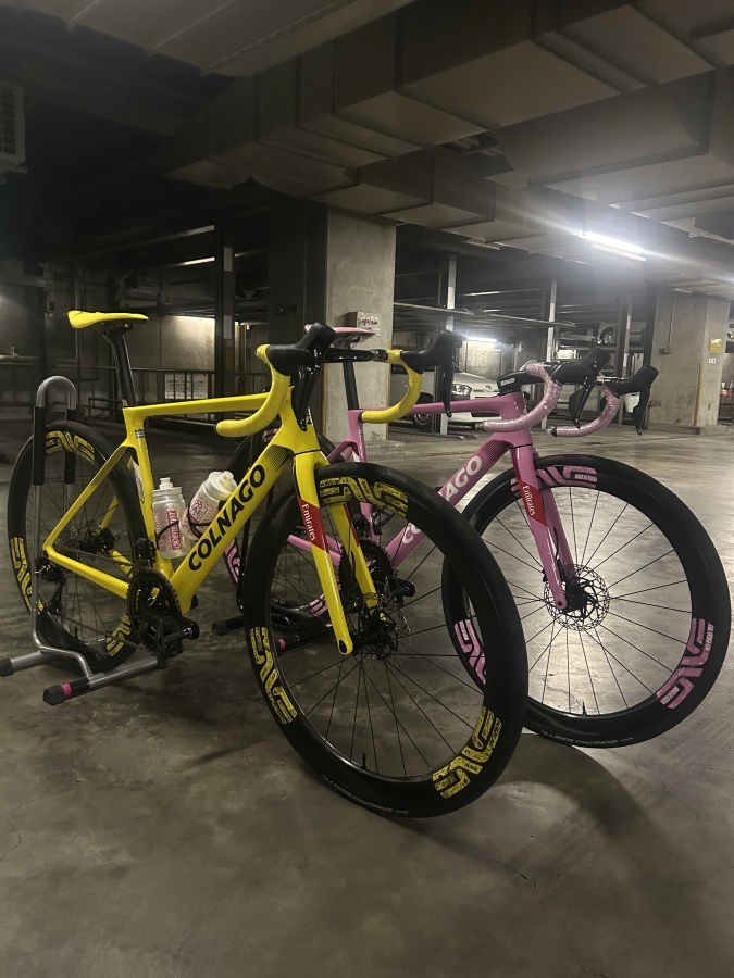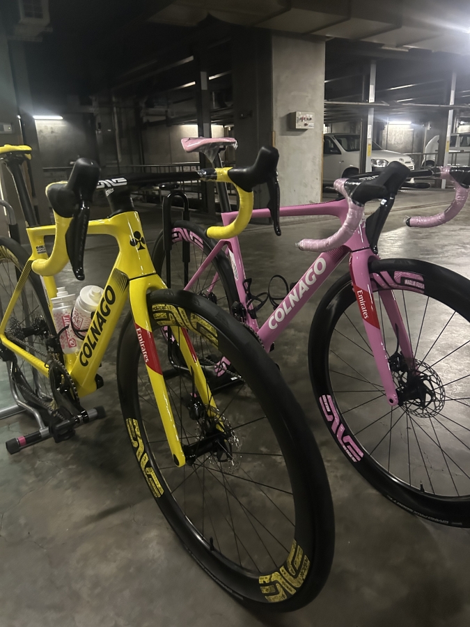 ジロ、ツール優勝記念の限定完成車となります。このカラーでのコルナゴV4RSは今後手に入らないでしょう!私も写真撮りながら心臓バクバクしておりました。