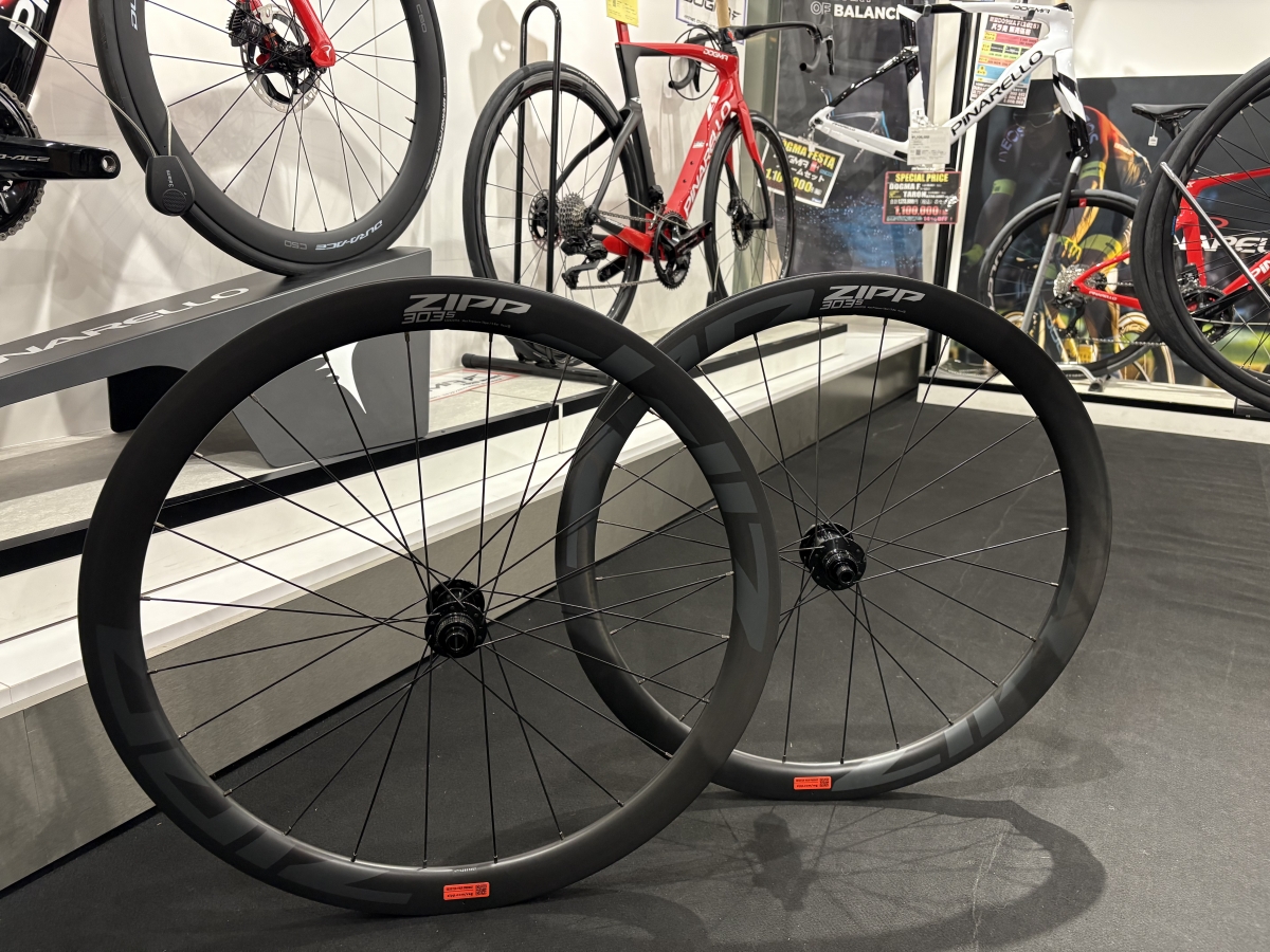 シマノ、カンパニョーロ、フルクラム、MAVIC、P&P等多数展示。
