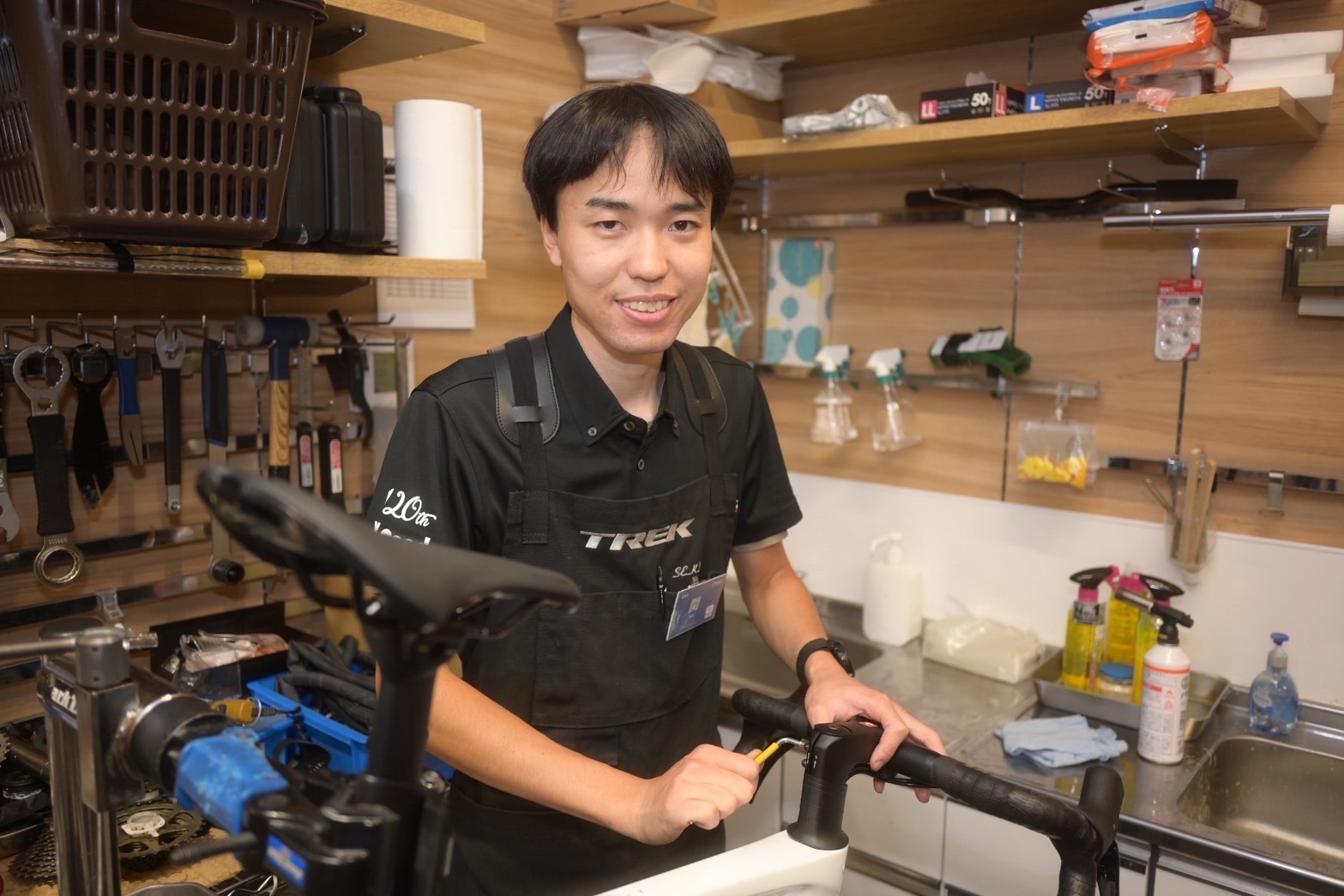 自転車は元々好きでしたが実際に働くと、お客様のニーズはクロスバイクから高級なロードバイクまで多岐にわたり、最初はわからないこともたくさんありました。それでも先輩スタッフのサポートもあり、どんどん仕事を覚え楽しく働く事ができています。
