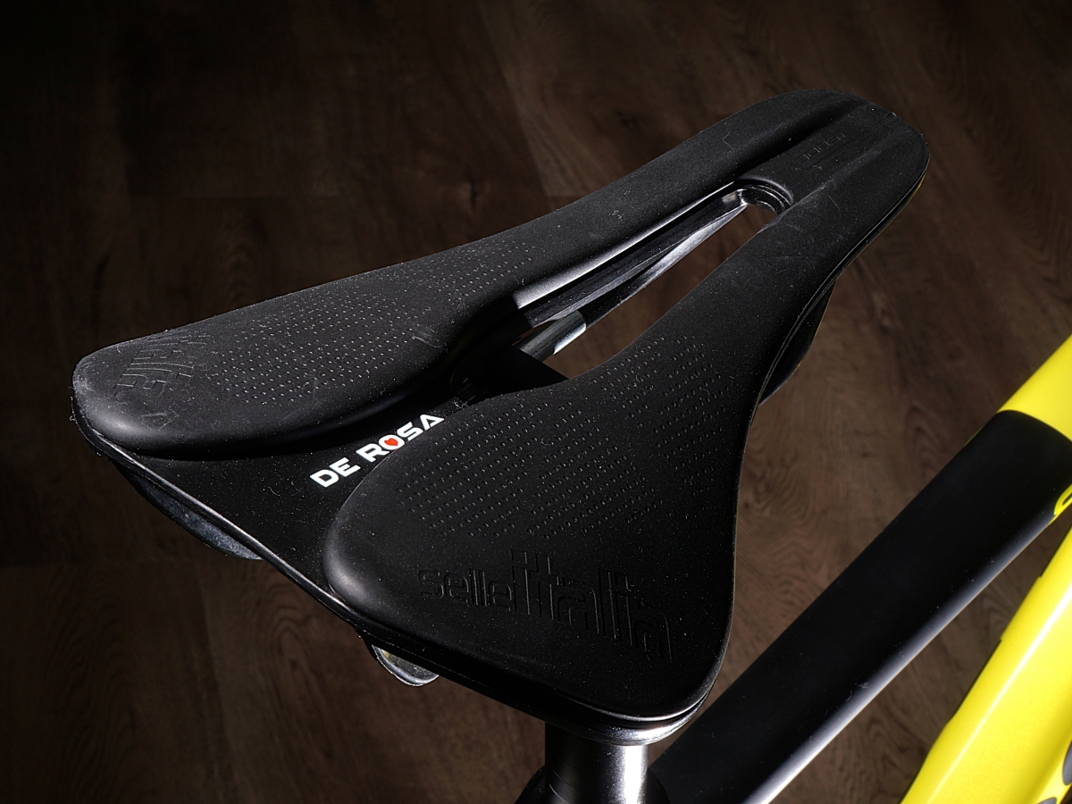 サドルは老舗イタリアンブランド『セライタリア』、しかも『DE ROSA』のロゴを使用した特別仕様となっています。