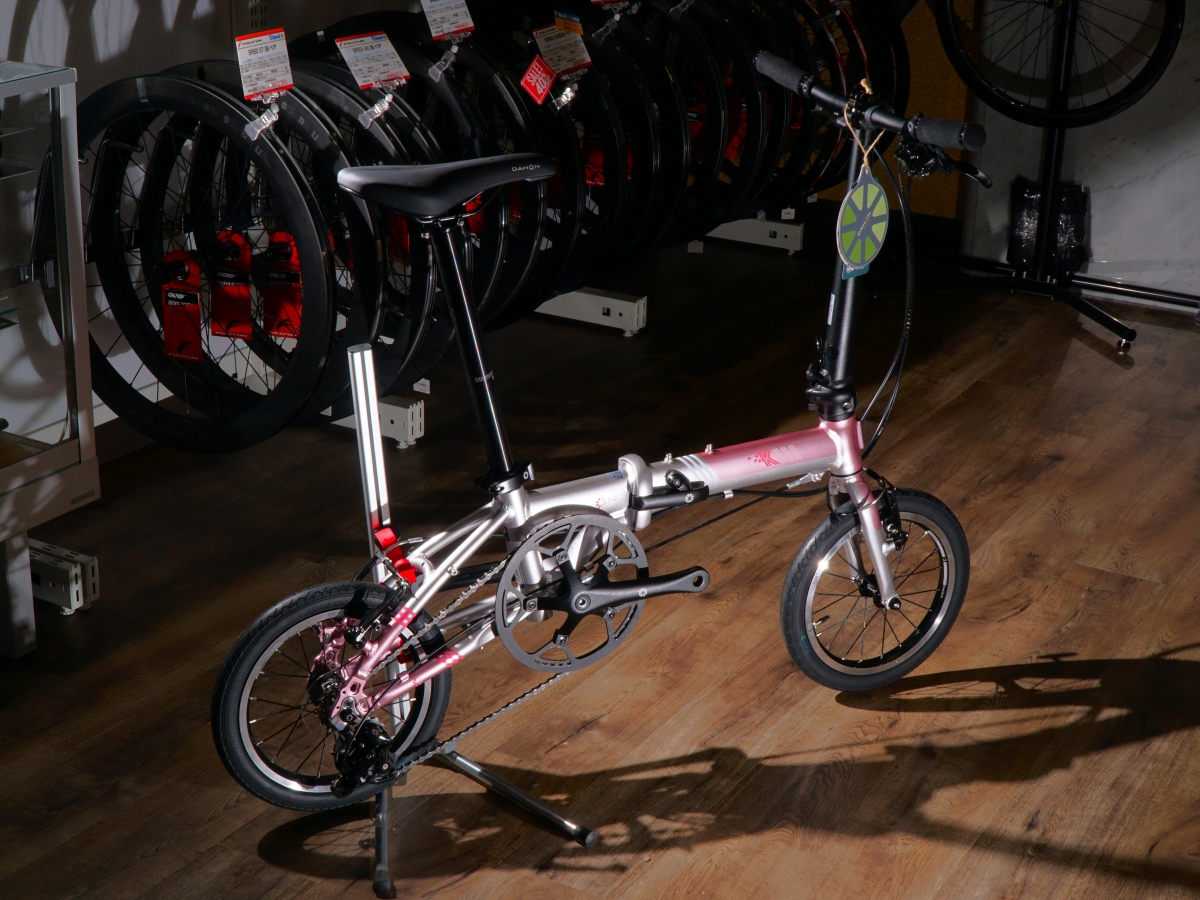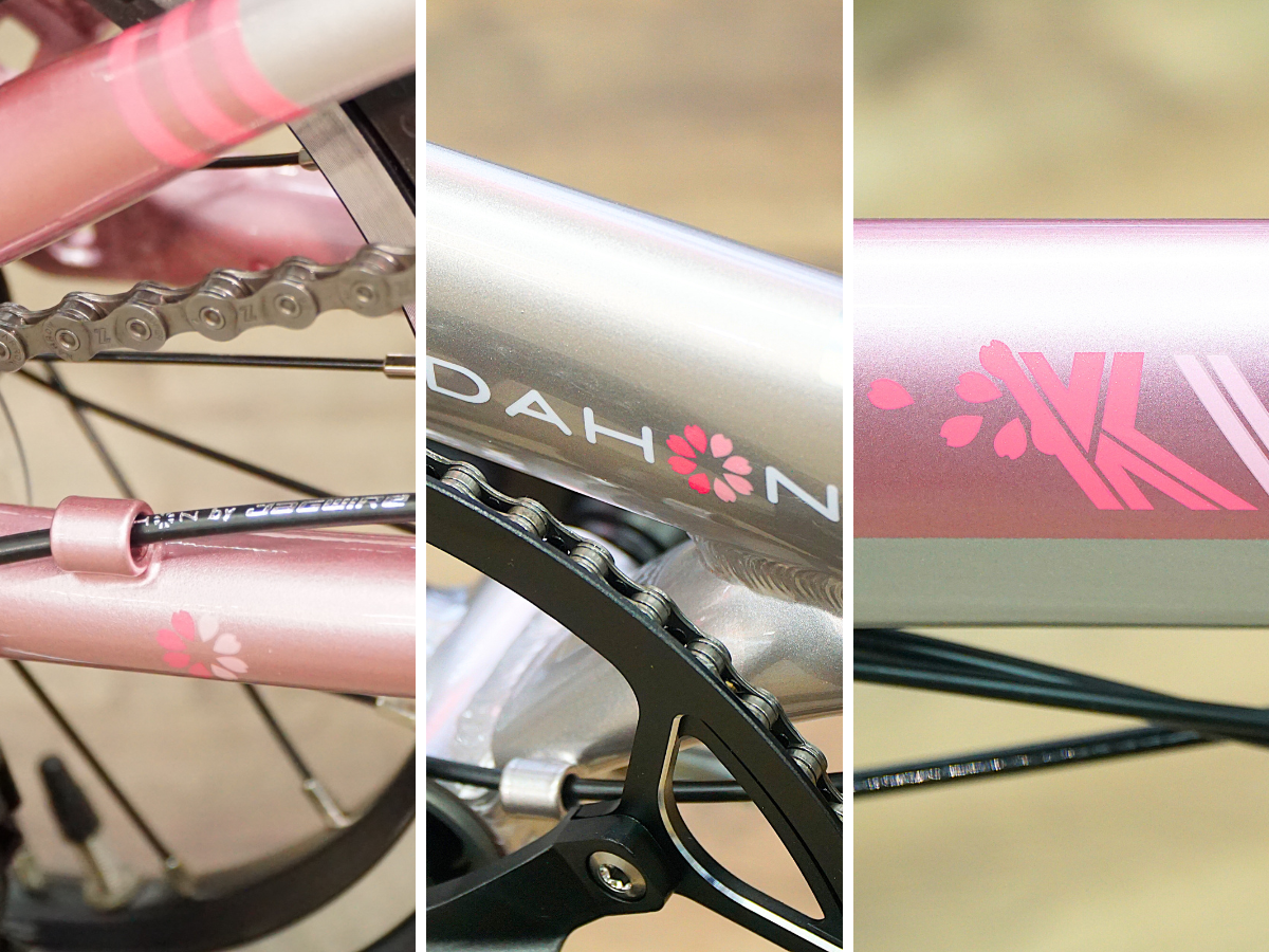 通常の『DAHON K3』とは異なる特別デザイン、ロゴに桜の花びらがあしらわれた可愛らしい一台となっております。