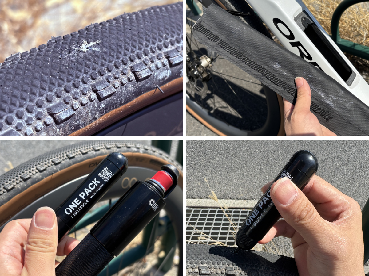 こんな時、あって良かったダウンチューブストレージ、備えて良かったチューブレス修理道具とポンプキット。