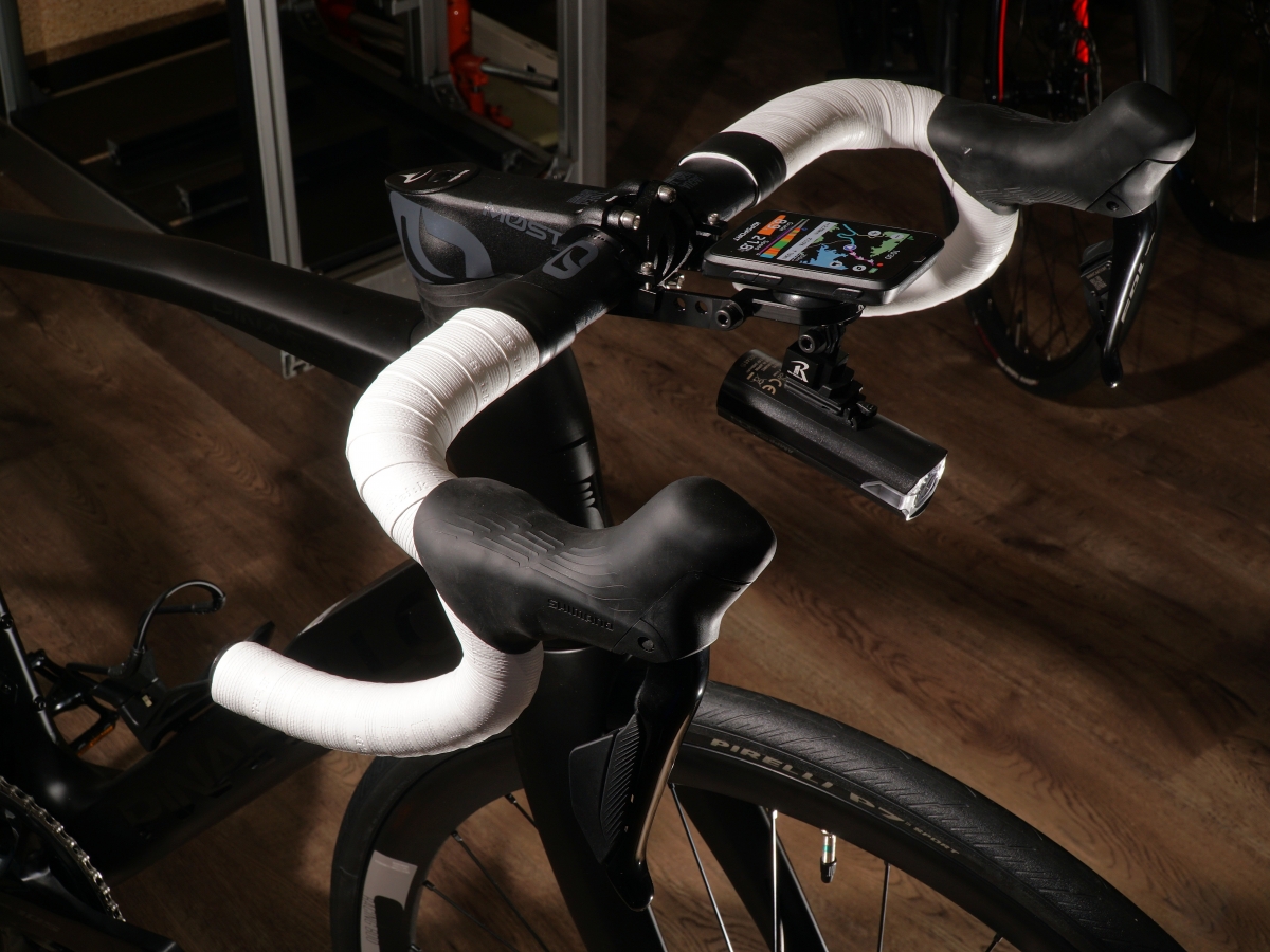 フロントライトはアクションカメラマウントを活用して取り付け。