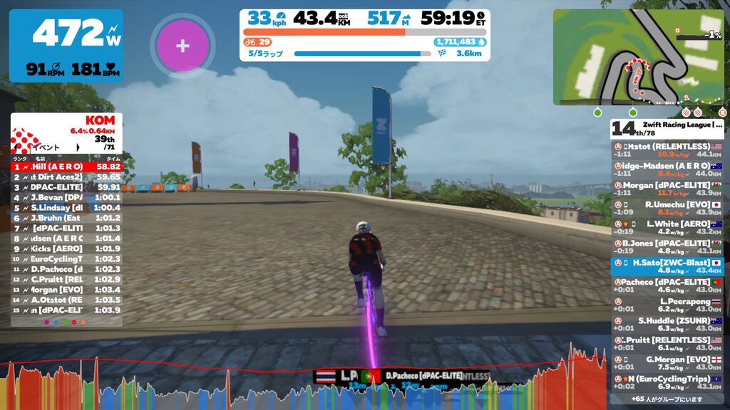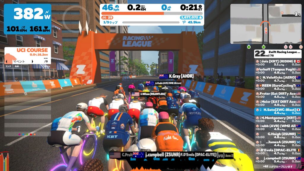 ちょうど1週間前にZwift Racing Leagueのレースに