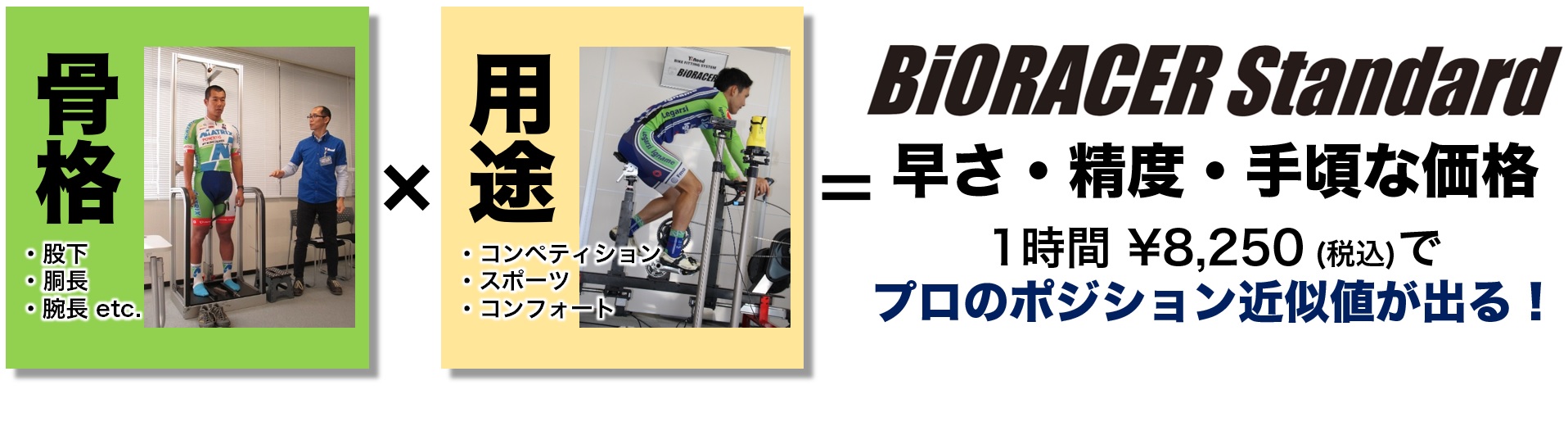 ライト¥1,000:ロードバイクのサイズ合わせに最適です。ロード購入者には実施を推奨しています。