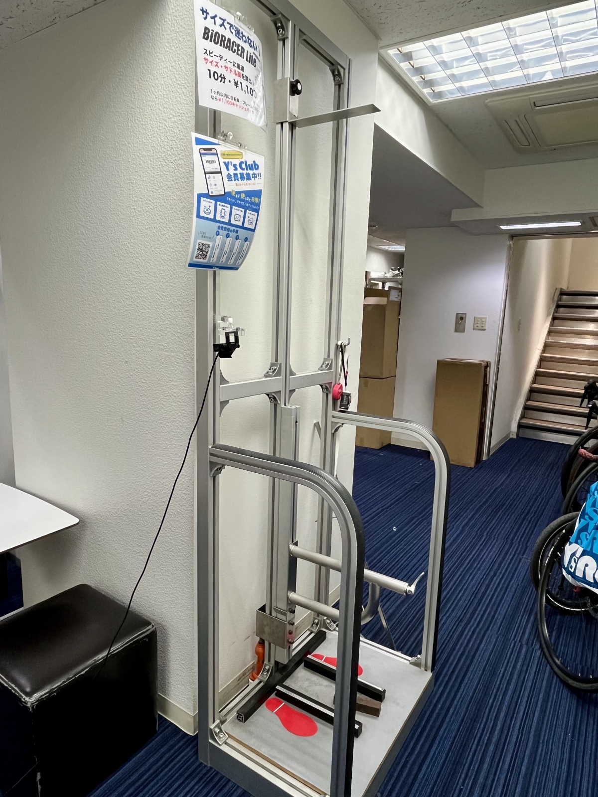 まずは先程の身体数値から導き出したデータに機械を調整し、一旦漕いでみます。柔軟性や筋力を考慮しないとりあえずのポジションなので、たいていの場合ここから大幅な修正が必要になります。私の場合、サドルの高さや前後位置はあまり調整しなくてもいい感じな位置でしたが、ハンドルがかなり遠く感じました。