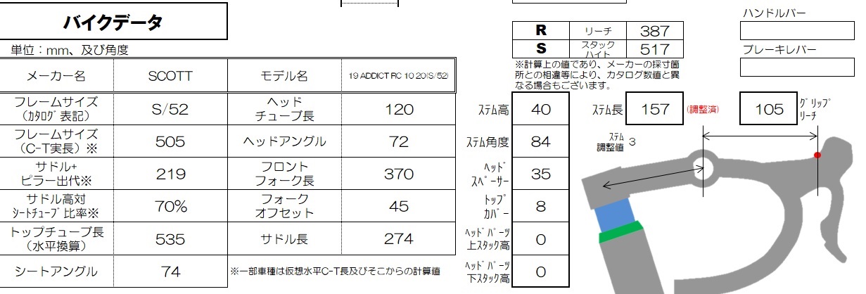 STDでは推奨の「リーチ」「スタック」が出るので、新しいバイクを買う時に参考になります。