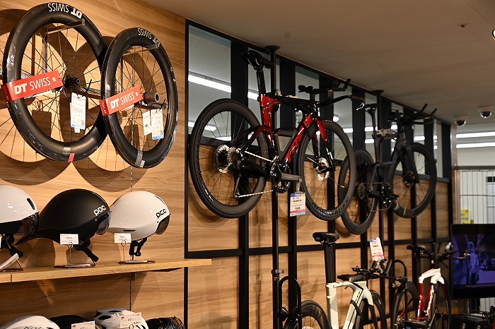 サーベロはロードもトライアスロンバイクも1階に展示しています。