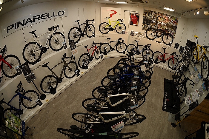 ピナレロの最新モデルから往年の名車(展示)まで見られるピナレロルーム。