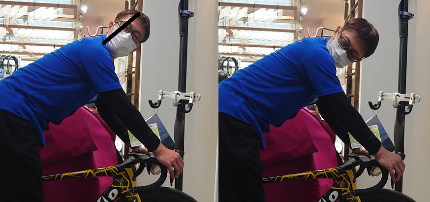 前傾姿勢のスポーツサイクルならではの確認方法です。