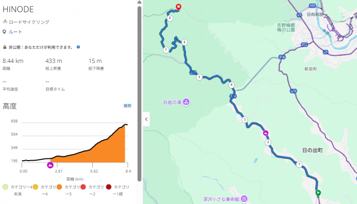 HINODEは短いコースで平坦基調→激坂