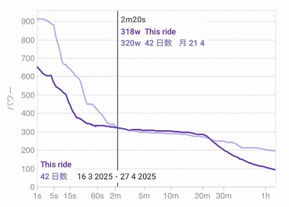実際に今の20分最大パワーはそのくらいなので正確そうな数字です。