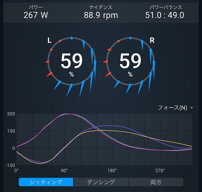 フォースベクトルを定期的にチェックしたり、普段から激坂で練習したことで、勾配がついてもしっかりと足を回せたのかもしれません。