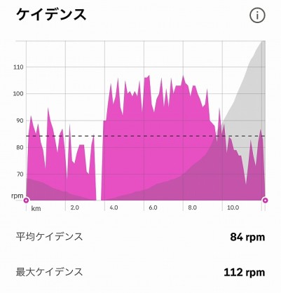 ケイデンスは中盤まで100前後と高めな反面、後半は激坂とはいえ7~80くらいまで下がってしまっています。