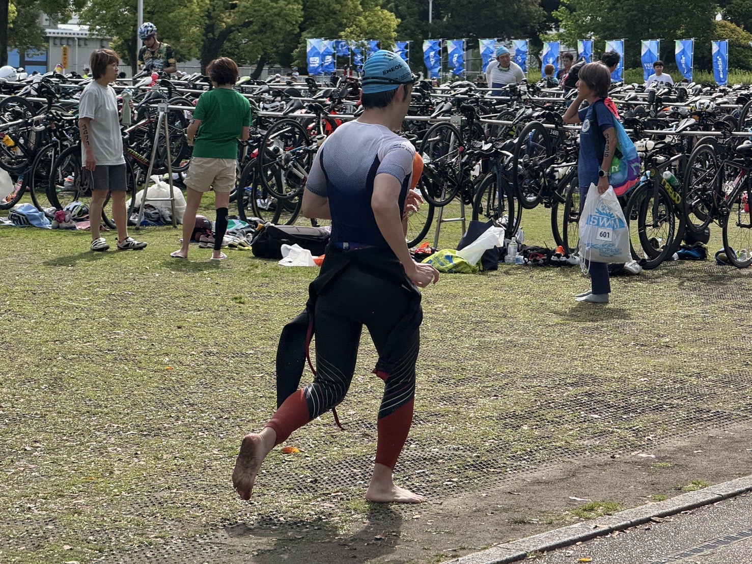 トランジッションエリアには海から上がった参加者たちが続々やってきます!