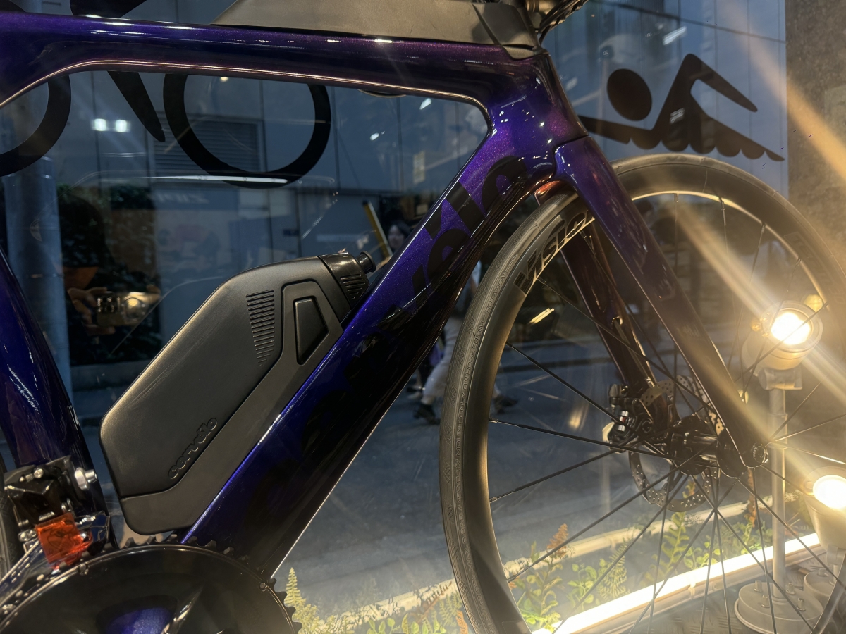 フレームにはエアロ形状の専用ボトルケージとボトルを装備。これを取り付けた状態での空力を計算して設計されています。