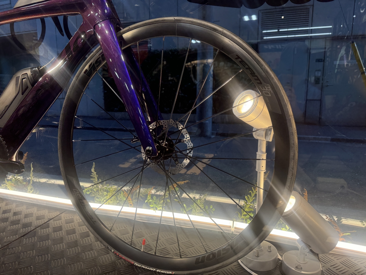 ホイールはVISIONの30mmハイトアルミホイールを装備。こちらも余裕があればリムハイトの高いカーボンホイールに交換してあげると一気に性能が向上します!当店自慢のホイールコーナーには様々なアップグレード用ホイールがありますので、併せてご相談ください!